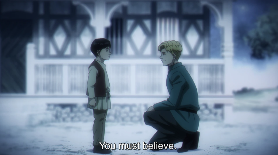 あの父が「疑え」言ったすぐあとに先生が「信じろ」言ったことについては、既に海外コメでもこっちの欄でも言われてるように、それぞれの文脈ごとの正しさがある。この作品では、対立するキャラの台詞でも、どちらが正しいとかはない描き方をしてる。