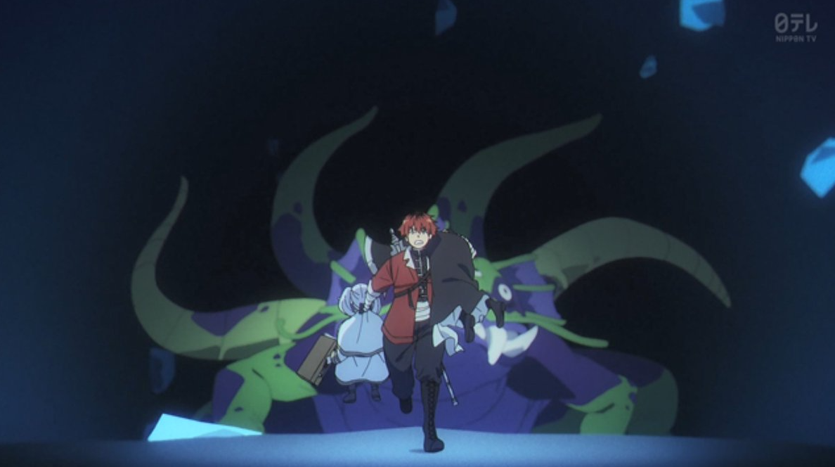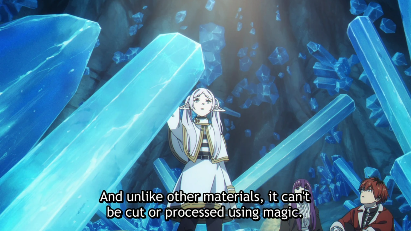 魔法都市オイサーストを後にし、北側諸国の道を行くフリーレン、フェルン、シュタルク。その道中、緩んだ地盤から穴の中へ落ちてしまう。そこは魔法を無効化する力を持った鉱石“封魔鉱”が一面に広がっていた。フリーレンとフェルンが魔法を使うことができず、地上に続く道を探すが、そこに魔物が現れて…。